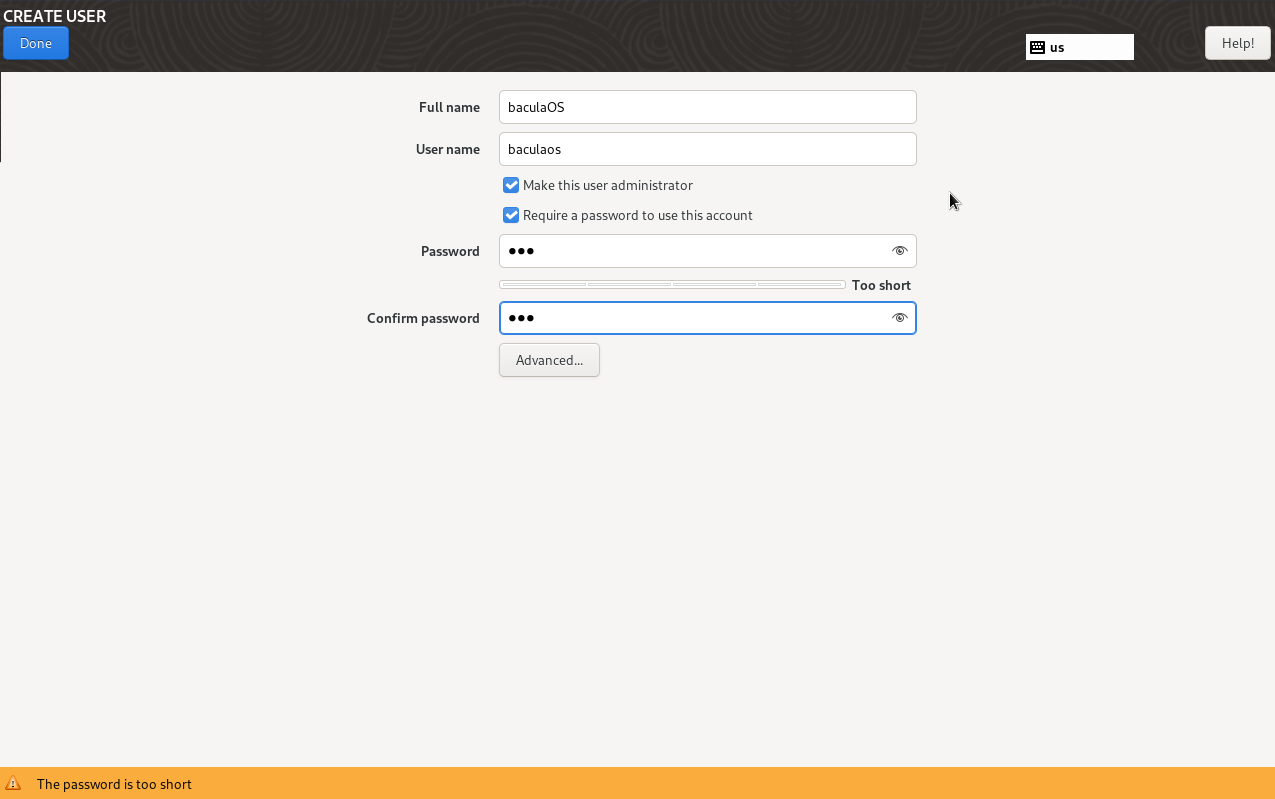 • Implementación de Cumplimiento de Contraseñas Seguras: BaculaOS garantiza que no se utilicen contraseñas débiles o secuenciales, fortaleciendo la seguridad contra intentos de acceso no autorizado.