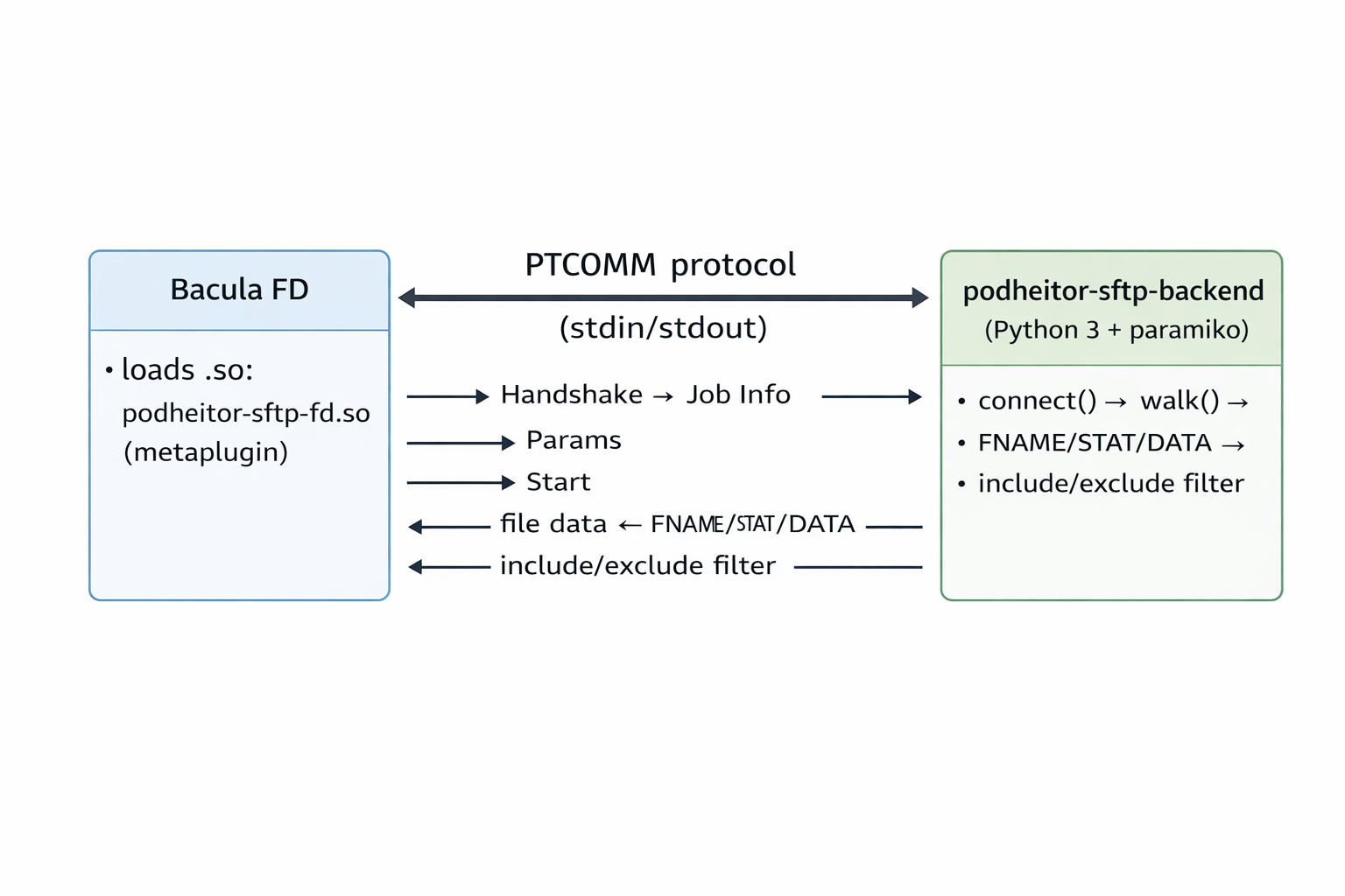 Agentless SFTP/SSH backup for Bacula Community Edition — zero deployment on remote hosts (contact us for download and subscription information).